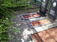 Укладка брусчатки и обновление надписи на могиле в Чашниково